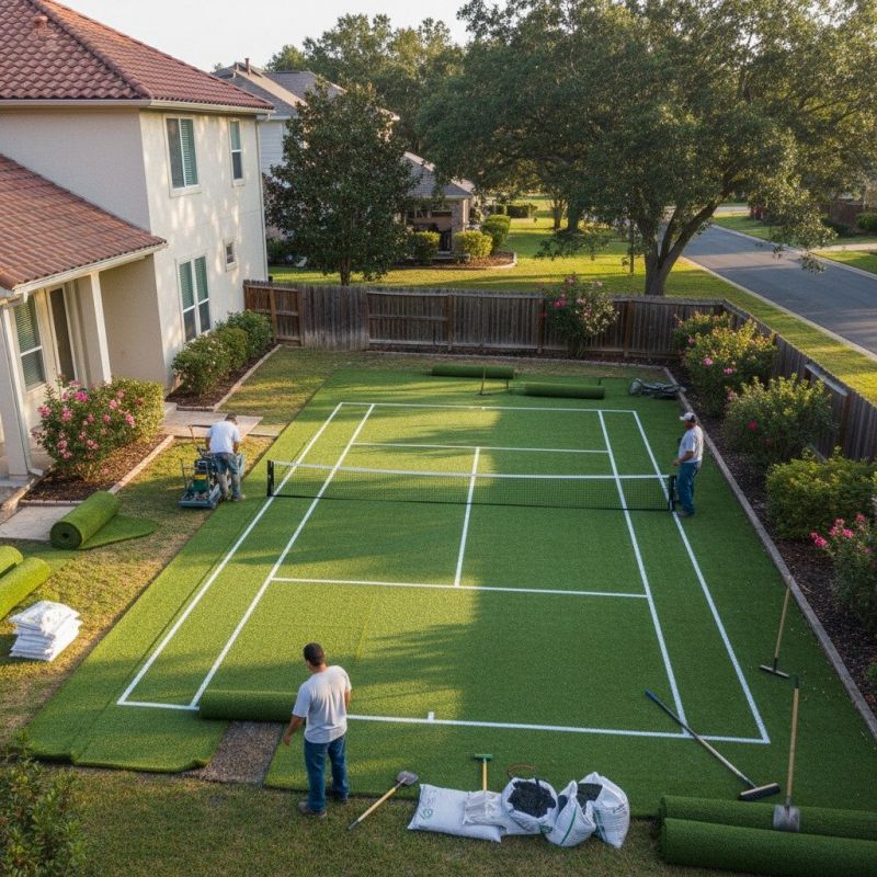 Backyard sports turf installation allows homeowners to create custom bocce ball or pickleball courts at home. Professional pros ensure a durable, safe, and attractive surface for outdoor recreation. Transform your backyard into a sports-friendly space with expert turf installation services.